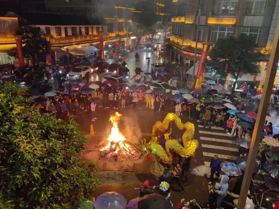 不同的是,围观的人里多了许多陌生面孔——十里八乡的人都赶来看,还有扛着长枪短炮的摄影师。镇区三角坪垒起了大火塔,旁边穆阳的几个舞龙队整装待发。