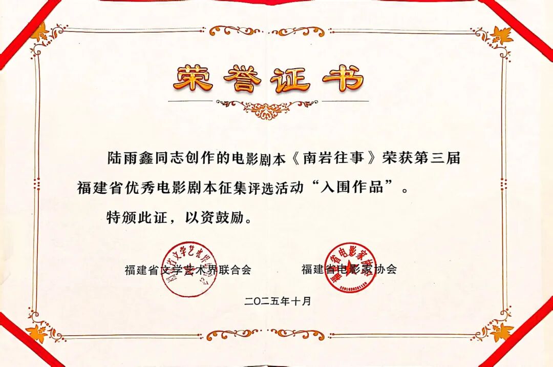 项目首期样本项目以备受关注的待拍影片《南岩往事》为起点,这部作品已成功入围第三届福建省优秀剧本评选活动。项目将延续陆雨鑫导演代表作《宁海往事》的“乡村影像叙事”风格,通过细腻的镜头语言,展现海峡两岸在乡村振兴进程中的文化传承共鸣与发展成果共创。提及《宁海往事》,其成绩堪称亮眼,先后斩获温哥华华语电影节“红枫叶奖”、亚洲微电影艺术节“金海棠奖”最佳作品奖、华东地区微视频大赛最佳作品奖等多个国内外重要奖项,用优质的乡村影像作品获得了行业与市场的双重认可。