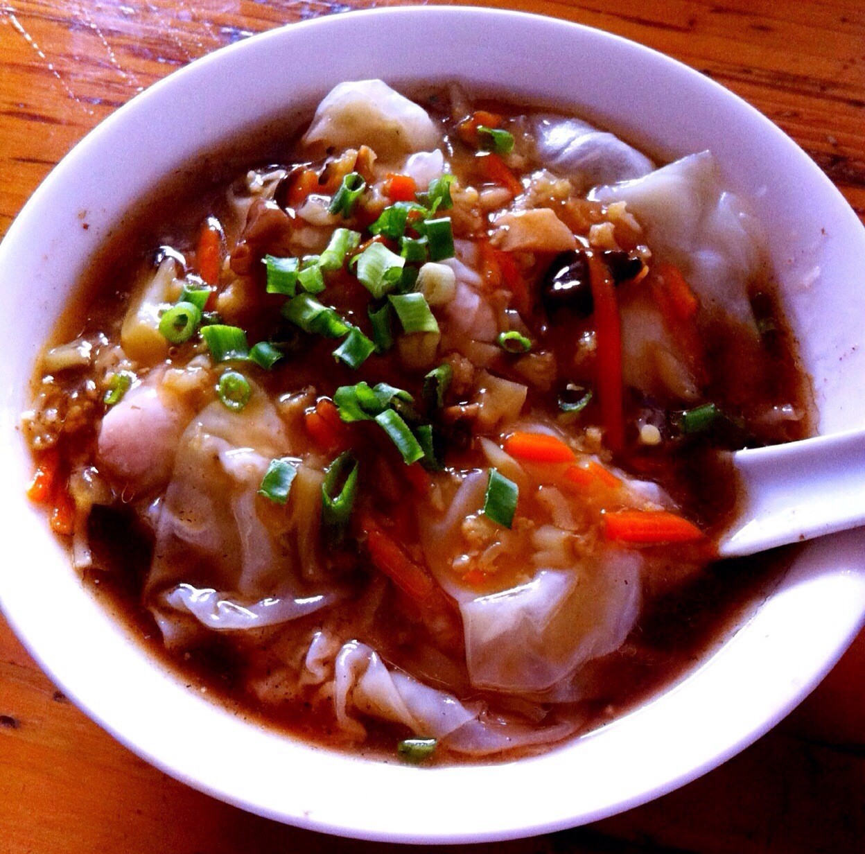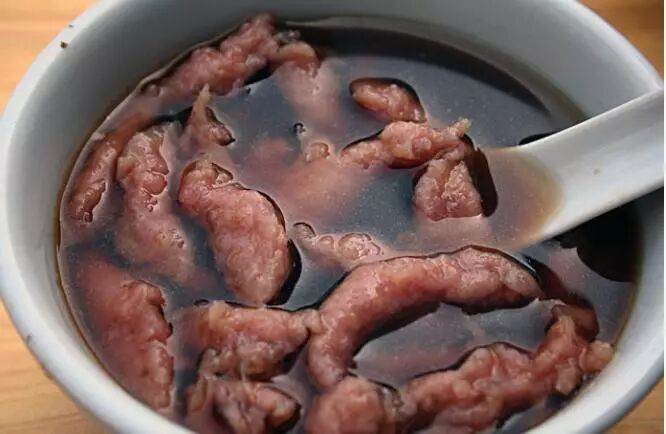 牛肉丸,类似福州牛滑、福鼎肉片,但是细看那熬成褐色的汤,就知道是独一无二的,很重的酸辣口味,辣是由辣椒汁加生姜调成,酸用的是白醋,对于福安人而言,不酸不辣就不够地道。
