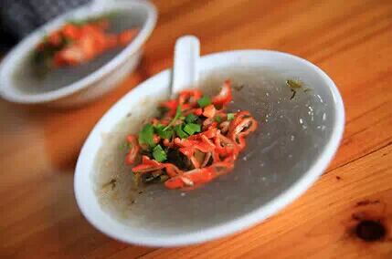 扁肉,是福安的特色小食,福安扁肉以穆阳最地道。将扁肉放入汤水滚沸的筒锅内,但见扁肉如金雀般在筒锅内上下飞舞,一忽儿,一只只“金雀”便款款浮出汤面;这时,摊主会迅即持漏勺将扁肉捞到盛有葱花、酱醋等佐料的碗内,然后用汤匙调匀整碗扁肉,是时,一碗色香味俱全的福安扁肉,就让你不得不味蕾绽开咯。